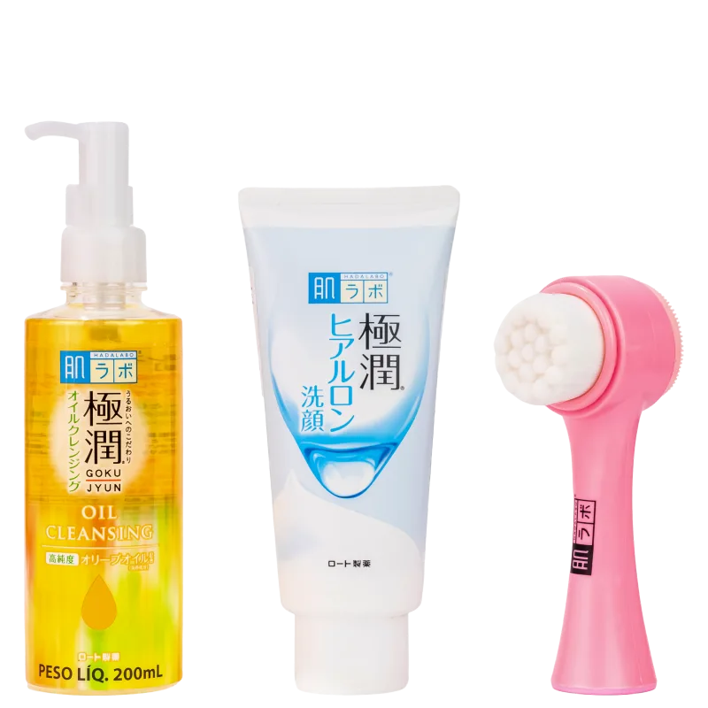 Hada Labo Double Cleansing Gokujyun Massage confere uma higienização completa da face.