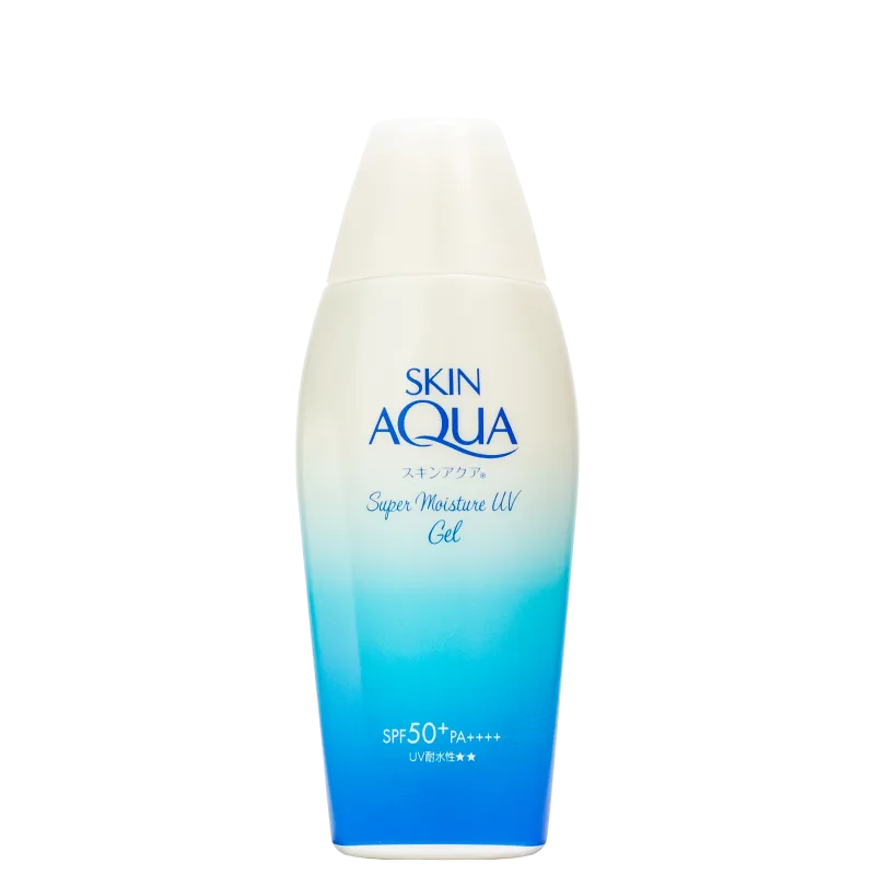 O Protetor Solar Skin Aqua UV Super Moisture Gel FPS50 protege a pele contra os raios UVA e UVB sem deixar o toque oleoso durante o dia.